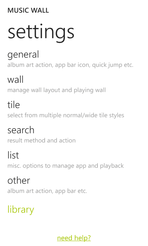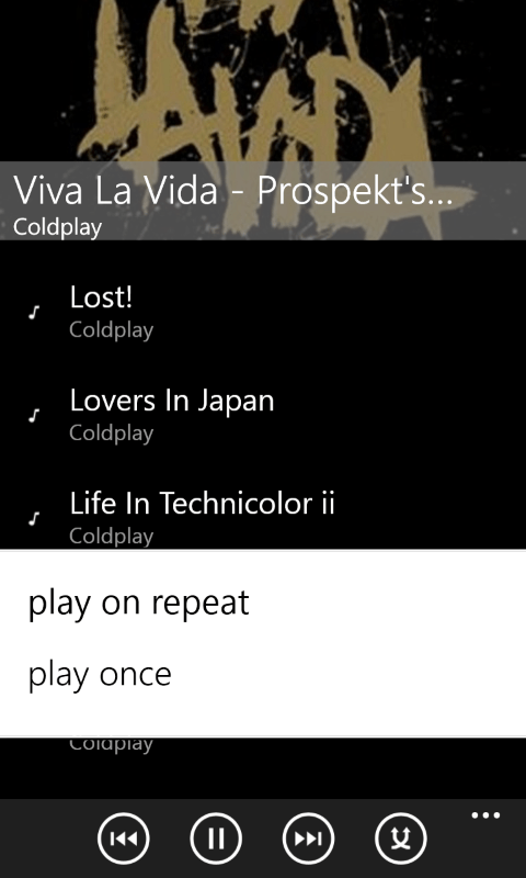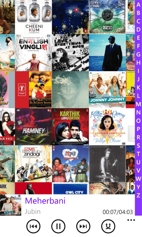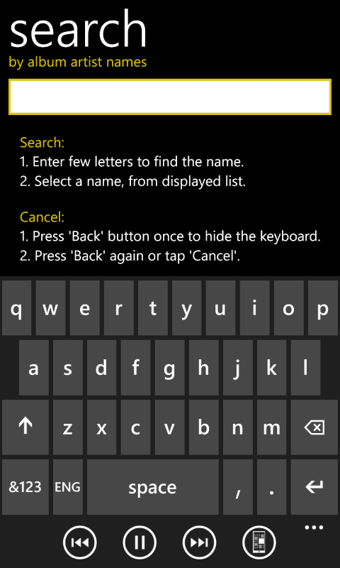 Note: Due to limitations of the Windows Phone OS, song seeking, fast forward, fast rewind and volume level control cannot be implemented via app. Use the volume-button music controls to achieve this.